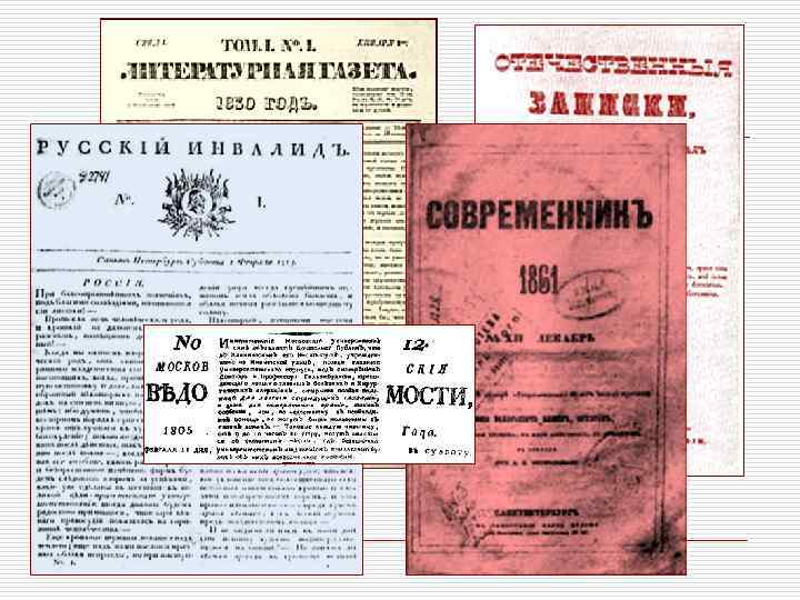 Основные издания периода o «Отечественные записки» o «Литератур ная газета»