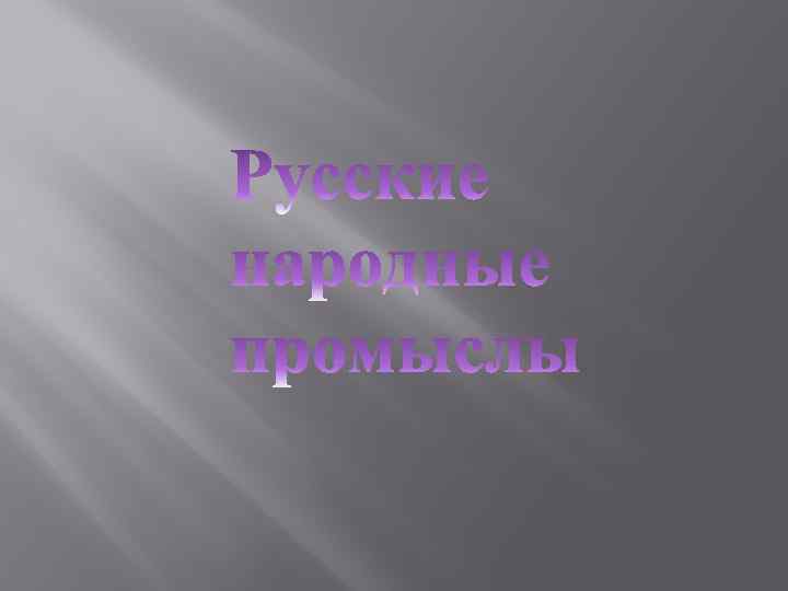 Русские народные промыслы — форма народного творчества, в которой отчетливо прослеживаются русские традиции, зародившиеся еще много веков назад. Изделия русских промыслов сочетают в себе неповторимость русской традиционной культуры.