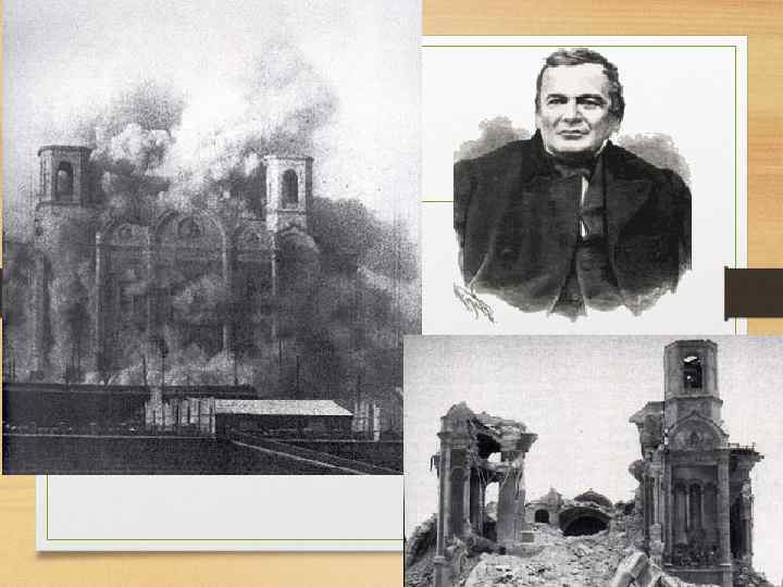 Архитектура • 12 декабря 1812 года, когда последний из 600 - тысячной армии солдат Наполеона покинул границу России, император Александр I издал манифест, по которому 25 декабря становилось государственным праздником, а в память о победе над Наполеоном следовало построить храм Христа Спасителя. • Перед вами – одно из самых известных творений архитектора Тона – Храм Христа Спасителя. Он строился на народные пожертвования очень долго – с 1839 по 1883 год. Весной 1912 года рядом с храмом установили статую Александра II. История этого храма – трагична. 5 декабря 1931 года храм был варварски уничтожен по приказу новой власти.