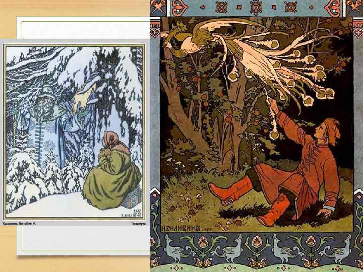 Традиционное искусство • Многие художники занимаются книжной иллюстрацией. Удивительны работы Ивана Билибина и Виктора Васнецова! Они привили нам любовь к русской народной сказке не меньше, чем она сама…