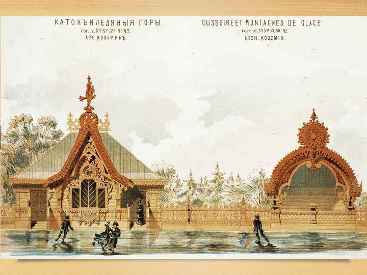 Развитие стиля в архитектуре конца XIX века • В начале 1870 -х годов народнические идеи пробудили в художественных кругах повышенный интерес к народной культуре, крестьянскому зодчеству и русской архитектуре XVI—XVII вв. Одними из самых ярких построек псевдорусского стиля 1870 -х годов стали «Терем» Ивана Ропета в Абрамцеве под Москвой (1873) и типография Мамонтова в Москве, построенная Виктором Гартманом (1872). • Это направление, активно пропагандировал известный художественный критик Владимир Стасов. Стиль распространился вначале в архитектуре деревянных выставочных павильонов и небольших городских домов, а затем в монументальном каменном зодчестве.