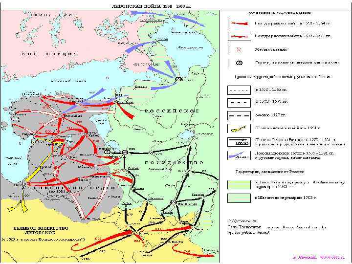 2. Ливонская война (1558— 1583) • Ливо нская война велась Царством Русским за территории в Прибалтике и выход к Балтийскому морю, чтобы прорвать блокаду со стороны Ливонской конфедерации, Великого княжества Литовского и Швеции и установить непосредственное сообщение с европейскими странами.