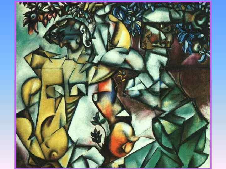 • Все творчество Шагала это его автобиография и исповедь • Тема страстной любви художника к своей первой жене - Белле Розенфельд • Мотивы «местечкового» пейзажа и быта вкупе с символикой иудаизма • Икона и лубок оказали на него влияние • Предугадал будущие авангардные течения