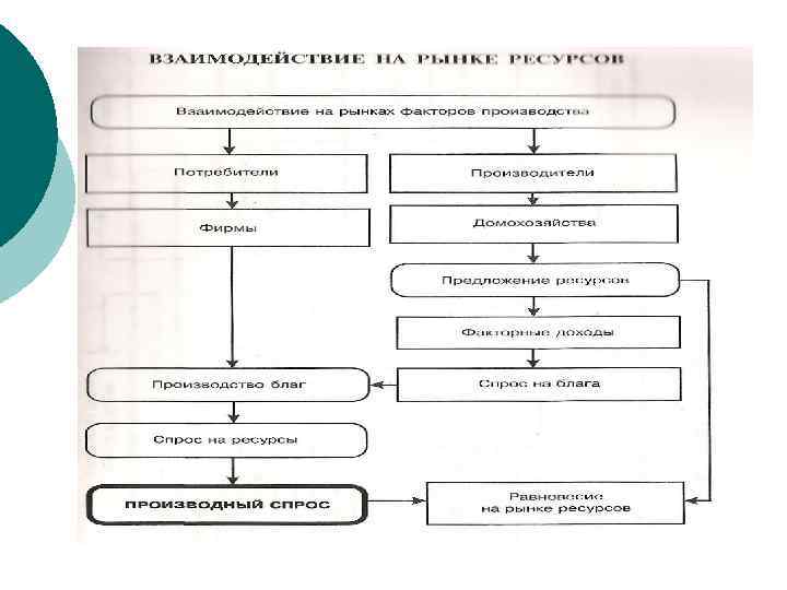 Особенности функционирования рынка ресурсов: ¡ ¡ ¡ На рынке ресурсов фирмы выступают в качестве покупателей, а домохозяйства – в роли продавцов. Спрос фирм на факторы производства носит производный (вторичный) характер, т. е. зависит от спроса на готовые товары. На рынке ресурсов фирма закупает необходимые ей факторы производства и комбинирует их определенным образом с целью получения наибольшей отдачи от вложений.
