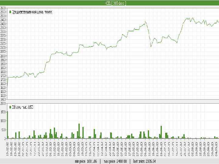 Торговы Число й сделок код Объем, тыc. USD млн KZT Объем, бумаг По последним торгам цена, тг, Доля рынк а, % тренд, % KZTO 143 602, 2 92, 3 115 769 796, 57 +0, 21 35, 5 RDGZp 34 200, 5 30, 7 3043 10198, 46 +0, 77 11, 8 KCEL 14 115, 1 17, 7 7 573 2 326, 64 -4, 92 6, 8 BTAS 5 2, 2 0, 340 1 251 005 0, 27 -0, 93 0, 1 HSBK 12 97, 4 14, 9 517 655 28, 82 +2, 44 5, 7 KZTK 14 192, 1 29, 4 2 080 14086, 41 2, 40 11, 3 TSBN 9 69, 4 10, 7 5 700 1 870, 00 0 4, 1 KKGBp 8 81, 3 12, 5 197 070 61, 00 -8, 96 4, 8