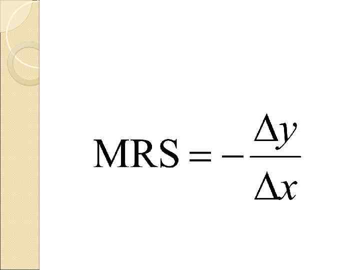 Предельная норма замещения Движение вдоль кривой безразличия характеризуется понятием предельной нормы замещения одного товара другим (MRS). MRS показывает максимальное количество товара, от которого потребитель отказывается ради получения одной дополнительной единицы другого товара.
