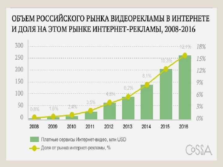 На 2015 год прогнозируемый объем рынка мобильной рекламы составлял около 27 миллиардов рублей ($430 миллионов долларов) по прогнозу e. Marketer, который компания дала в сентябре. При этом рост рынка мобильной рекламы в прошлом году составил 120%, а на 2016 год запланировано его увеличение еще на 80%, до 780 миллионов долларов. Рынок мобильной рекламы в России
