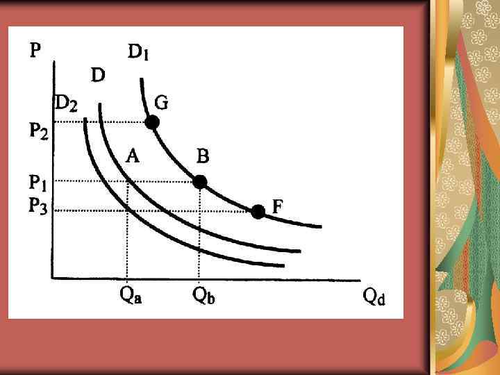 Спрос – желание приобрести товар на рынке Величина спроса – количество товара… Фукнция спроса – зависимость…Qd= a- b. P (а, b – численные коэффициенты) Кривая спроса (издержки, выгода, номинальный и реальный доход) Закон спроса – обратно пропорциональная зависимость между величиной спроса и ценой Изменение спроса – сдвиг кривой спроса Изменение величины спроса – сдвиг по кривой спроса Неценовые детерминанты спроса (предпочтения, количество потребителей, цены на взаимозаменяемые и взаимодополняемые товары, потребительские ожидания, уровень дохода)