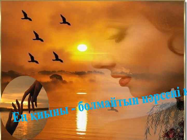 Сүйгенім бе? Сүйгенім өмірде емес. Ұйықтасам, түнде түсім, көңілде елес, Өлгенше кетер емес көңілден еш. . . Мұқағали Мақатаев а? ат п абб Сағыныш па? Қалай оны тауыса аламын. Сағынғанмын, шөлдегем, Ақыры шаршағаным, шаршағаным. Махаббат па? Махаббат болған еді. Таудың мен еркін жүрген тағысы едім, Тапты да, түсірді ғой торға мені. Махаббат па? Махаббат болған менде. Жиі барғам аққулар қонған көлге, Ал қазір тоңған жүрек, солған кеуде. Ғашықтық па? Ғашық та бола білгем. Бір-ақ жанға ғашықпын бала күннен, Жанымменен сүйемін, жанарыммен.