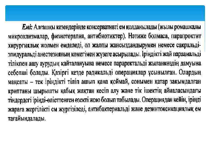 Пайдаланылған әдебиеттер: “Жалпы хирургия” В. К. Гостищев, 5 -шығарылым, 2014 ж “Жалпы хирургия” Д. О. Дұрманов