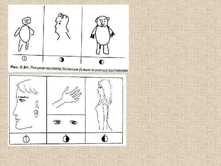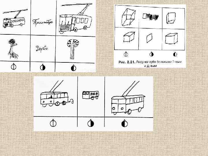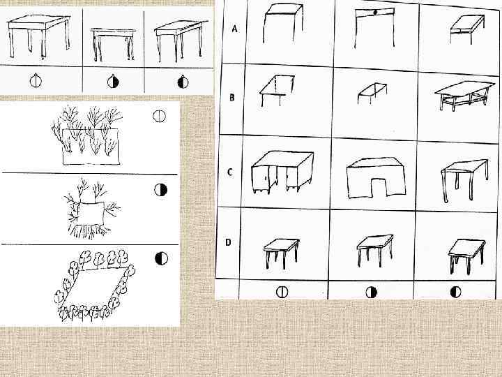 Какое полушарие активно Левое Правое Отображение понятия о предмете (концепта) Изображение предмета Использование символических знаков Использование иконических знаков Отображение геометрии объективного Изображение видимой геометрии пространства (набор чертёжных методов пространства (создание иллюзий объёма изображения, плоскостное решение) на плоскости) Часть как замена целого Полный, подробный рисунок Изображение часто подписано Подписи обычно отсутствуют Прямая линейная перспектива Обратная перспектива Части рисунка часто не связаны друг с другом Рисунок содержит целостное изображение