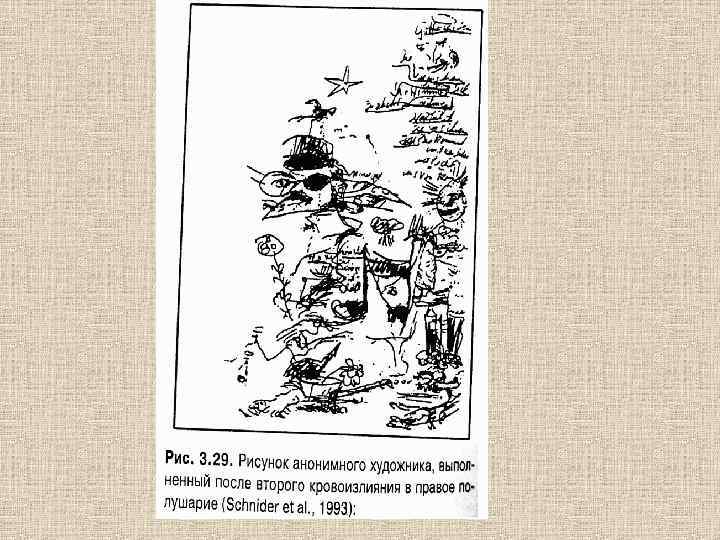 2. Творчество при поражении мозга 1. У людей с расщеплённым мозгом (с перерезанным мозолистым телом) полностью исчезают творческие способности (Hoppe, 1988). 2. При лобно-височной деменции, в особенности при поражении передней височной доли, наблюдаются не только нарушение речи и потеря социальных навыков, но и возрастает зрительная креативность. В частности, они начинают довольно хорошо рисовать, хотя до заболевания у них подобных талантов не наблюдалось (Miller et al. , 1998; Balzac, 2003). 3. В литературе описан случай профессиональной художницы, которая также страдала лобновисочной деменцией (Mell et al. , 2003). По мере прогресса болезни, у этой больной возникла афазия, однако её художественный талант резко возрос. Её картины стали более независимы и оригинальны. 4. Также описан случай художника, который в результате на ранней стадии кортико-базальной дегенерации правого полушария мозга утратил свои способности к рисованию, при сохранении других когнитивных функций и навыков (Kleiner-Fisman et al. , 2003) 18. Hoppe K. D. Hemispheric specialization and creativity. — Psychiatr Clin North Am 11(3), 1988. P: 303 -15. 19. Miller B. L. , Cummings J. , Mishkin F. , Boone K. , Prince F. , Ponton M. , Cotman C. Emergence of artistic talent in frontotemporal dementia. — Neurology 51(4), 1998. P: 978 -82. 20. Balzac F. Sudden emergence of visual creativity in patients with frontotemporal dementia. — Neuro. Psychiatry reviews, vol. 4, № 5, 2003. 21. Mell J. C. , Howard S. M. , Miller B. L. Art and the brain: the influence of frontotemporal dementia on an accomplished artist. — Neurology 60(10), 2003. P: 1707 -10. 22. Kleiner-Fisman G. , Black S. E. , Lang A. E. Neurodegenerative disease and the evolution of art: the effects of presumed corticobasal degeneration in a professional artist. — Mov Disord 18(3), 2003. P: 294 -302.