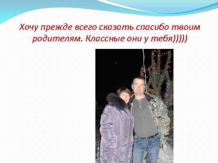 Хочу прежде всего сказать спасибо твоим родителям. Классные они у тебя)))))