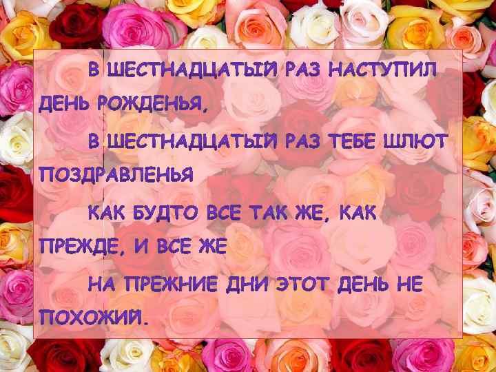 Самая любимая наша девочка, от всей души поздравляем тебя с 16 -летием. С ЮБИЛЕЕМ!!! Желаем тебе оставаться всю жизнь неисчерпаемой сокровищницей: пусть твои глазки всегда блестят, как алмазки; пусть твои губки будут как манящие рубины; а твоя доброта — такой же редкостной ценной как черная жемчужина, которую мечтают достать из глубокого океана.