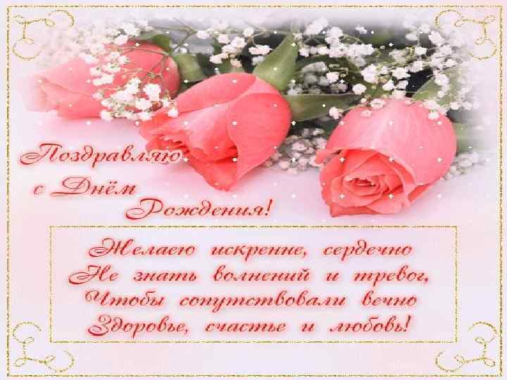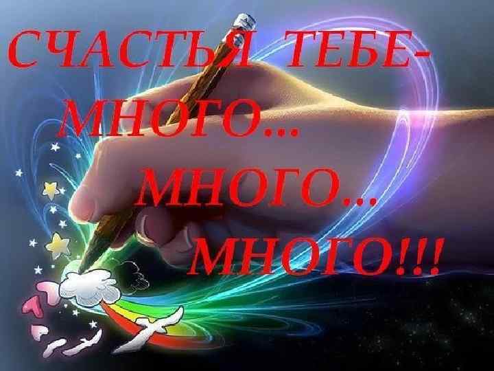 Желаем счастья целый ворох, Улыбок радостных букет, Друзей надежных и веселых, В глазах твоих лучистый свет!