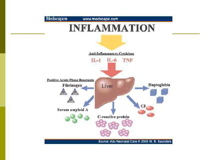 Синтез СРБ p Главный индуктор синтеза СРБ - ИЛ-6. Концентрация этих маркёров в плазме коррелирует между собой. Стимуляция синтеза СРБ осуществляется также ИЛ-1β, ФНО-α, онкостатином М, тромбоцитарным фактором роста.