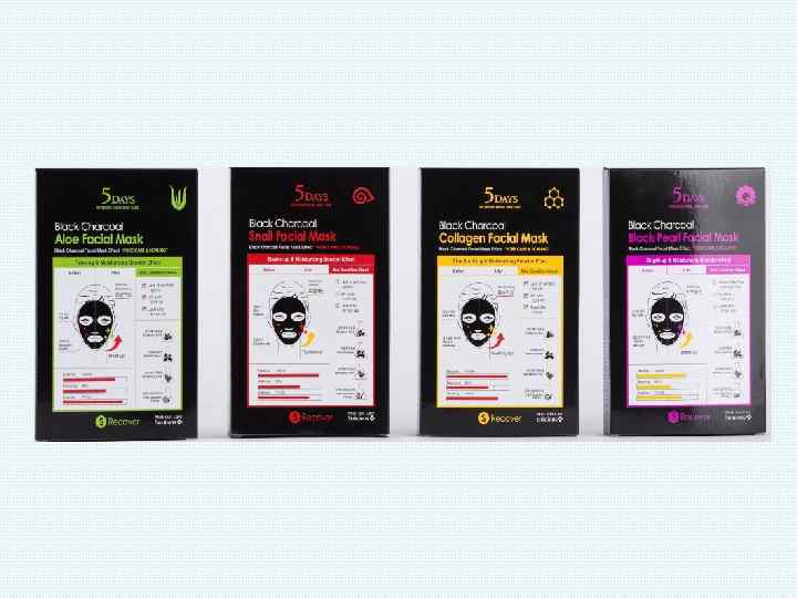 Black Charcoal Aloe Facial Mask PRODUCT FEATURES ★ Black Charcoal Aloe Facial Mask Aloe barbadensis leaf juice that moisturizes and soothes skin invests vitality to the fatigued skin, and far-infrared rays radiating from charcoal powder in black mask sheet and black complex components are effective in pore care. Product Name Black Charcoal Aloe Facial Mask Weight 25 g Packaging spec 5 ea/inner box (vinyl shrink packaging) Ctn/Box(EA) SALE price Inner Case: 100 EA Ctns: 500 EA/ctns 3
