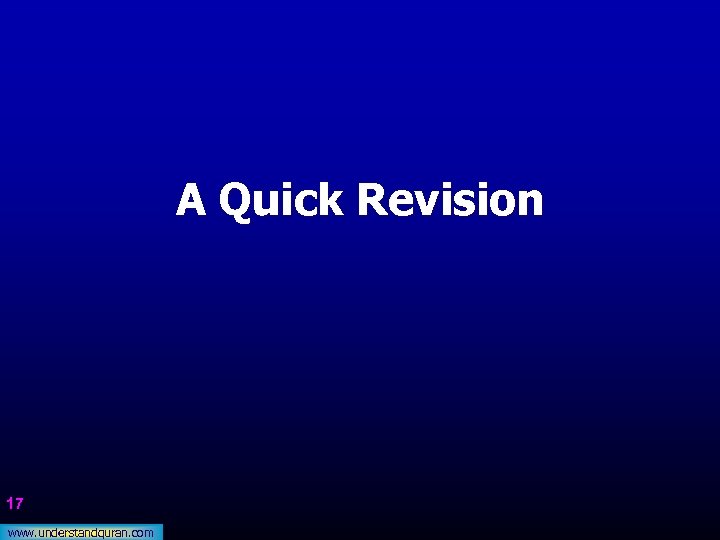 A Quick Revision 17 www. understandquran. com