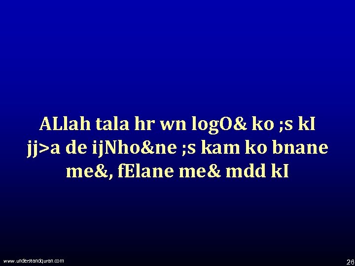 ALlah tala hr wn log. O& ko ; s k. I jj>a de ij. Nho&ne ; s kam ko bnane me&, f. Elane me& mdd k. I www. understandquran. com 26