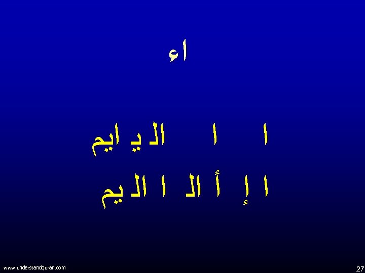 ﺍﺀ ﺍ ﺍ ﺍﻟ ﻳ ﺍﻳﻢ ﺍ ﺇ ﺃ ﺍﻟ ﺍ ﺍﻟ ﻳﻢ www. understandquran. com 27