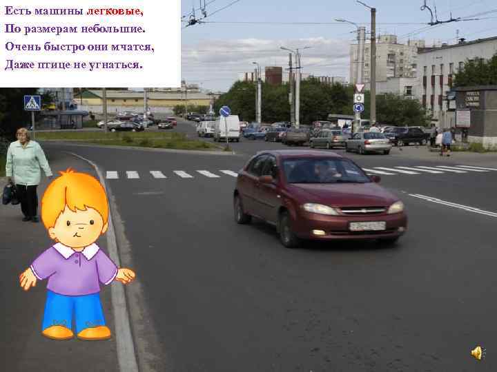 Есть машины легковые, По размерам небольшие. Очень быстро они мчатся, Даже птице не угнаться.