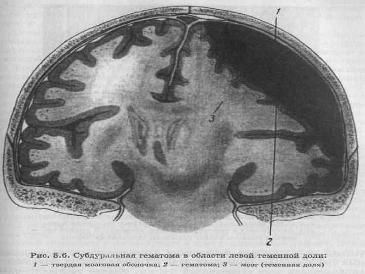 Бас миы ісігі Жедел субдуральды гематома. Бас миының деслокациясымен қысылуы.
