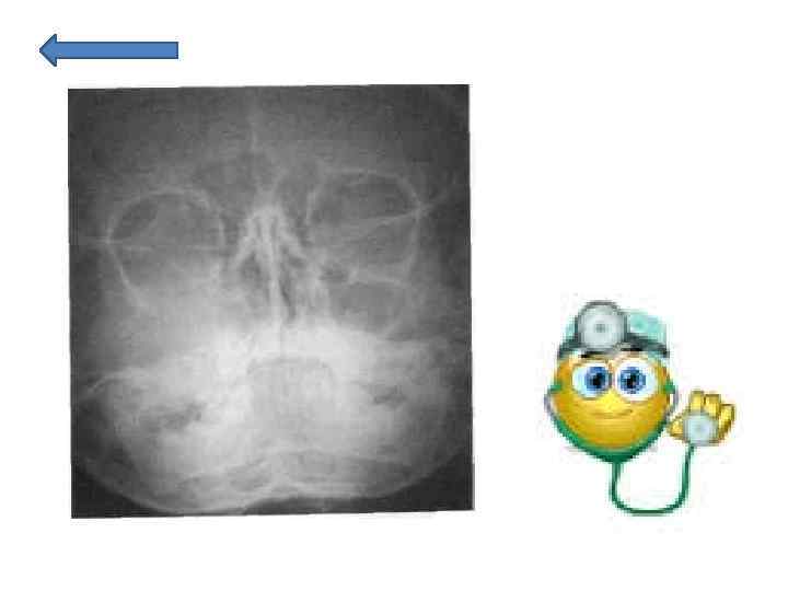 Рентгенограмма черепа в прямой проекции (носо подбородочная укладка) ребенка с саркомой верхней челюсти. Оп ределяется тень в участке правой верхнече люстной пазухи, распространяющаяся на нижнюю стенку орбиты, правый носовой ход, альвеолярный отросток. Границы тени размыты