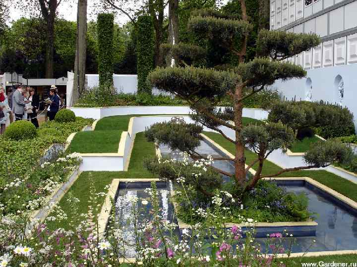 В последнее время появились сады воды, сады архитектуры, выставочные сады. Выставочные сады – располагаются на маленьких площадях, призваны показать новые тенденции в ландшафтной архитектуре. Выставка садов в Челси.