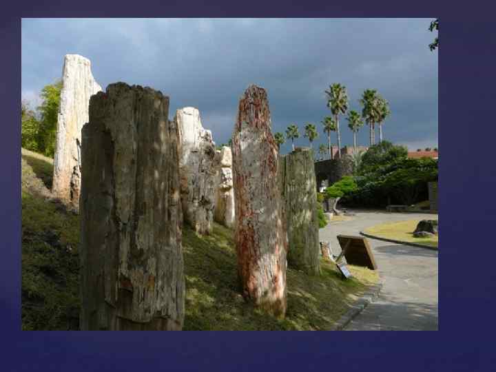 Композиция из окаменевших деревьев зрительно «помещает» посетителей в единую временную точку, где соединились прошлое и настоящее. Здесь найдена удачная зрительная рифма «камни-пальмы» . Интересны две миникомпозиции каплеобразной формы. Они стилистически подчинены общей композиции и, благодаря своим плавным контурам и кажущейся прозрачности, уравновешивают все элементы этой части сада между собой.