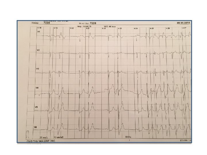 Нарушения сердечного ритма 1. Фибрилляция (трепетание) Продолжить мониторирование ЭКГ, предсердий регулярно измерять АД (1 раз в 3 -5 минут , при необходимости чаще) 2. 3. Попробовать немедленно провести вагусные пробы (комбинация дыхательной пробы, рефлекса Ашнера и синокаротидной пробы) В/в введение 10% новокаинамида 1 -1, 5 г/кг (до 15 -17 мг/кг) медленно;