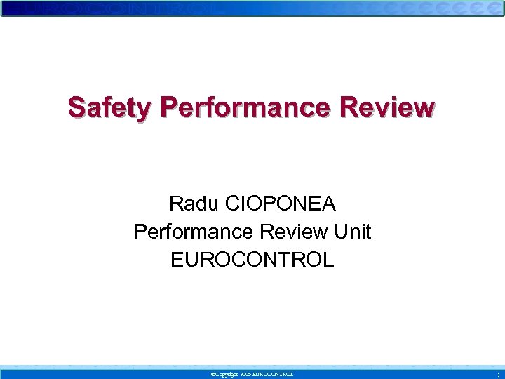 Safety Performance Review Radu CIOPONEA Performance Review Unit EUROCONTROL Copyright 2005 EUROCONTROL 1