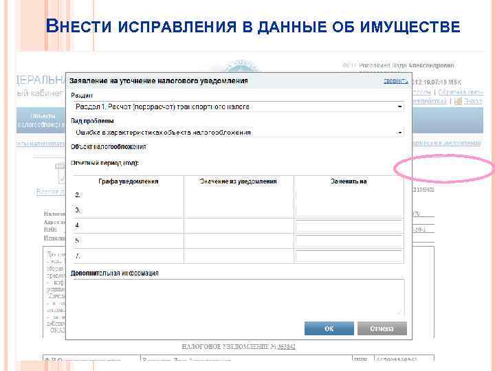 ВНЕСТИ ИСПРАВЛЕНИЯ В ДАННЫЕ ОБ ИМУЩЕСТВЕ