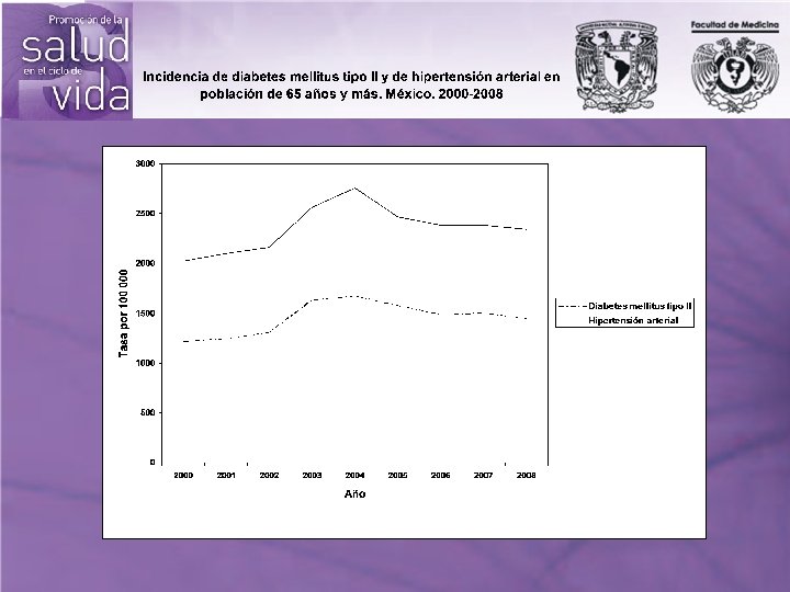 Veinte principales causas de enfermedad en el grupo de 65 años y más Estados Unidos Mexicanos. 2008 No, 1 2 3 4 5 6 7 8 9 10 Padecimiento Infecciones respiratorias agudas Infección de vías urinarias Infecciones intestinales por otros organismos y las mal definidas Úlceras, gastritis y duodenitis Hipertensión arterial Diabetes mellitus no insulinodependiente Gingivitis y enfermedades periodontales Amebiasis intestinal Neumonías y bronconeumonías Conjuntivitis Otras causas Total global Fuente: SUIVE/DGE/Secretaría de Salud/Estados Unidos Mexicanos. 2008 *Por 100 000 habitantes de 65 años y más Casos 1130765 345152 Incidencia* 18896. 70 5767. 98 291328 167321 139989 86039 37276 29553 29306 25150 51349 2475628 4868. 51 2796. 17 2339. 42 1437. 84 622. 94 493. 87 489. 75 420. 29 858. 12 41371. 29