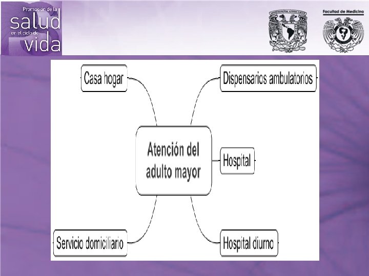 • “Se requiere de un enfoque holístico, que incorpore la intervención multidisciplinaria e interdisciplinaria, así como los aspectos de tipo preventivo, de atención individual y a la comunidad, así como de rehabilitación, que permitan dar una respuesta integral, tomando en cuenta las dimensiones biológica, psicológica, social, cultural y espiritual de las personas”. • Desde la salud pública, a manera de ejemplo, se encuentran los programas de vacunación contra influenza, neumonía, tétanos y difteria recomendadas a partir de los 60 años, con una aplicación anual en los meses de octubre a diciembre para las dos primeras, y cada 10 años las segundas.