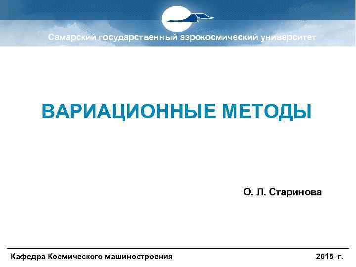 Самарский государственный аэрокосмический университет ВАРИАЦИОННЫЕ МЕТОДЫ О. Л. Старинова Кафедра Космического машиностроения 2015 г.