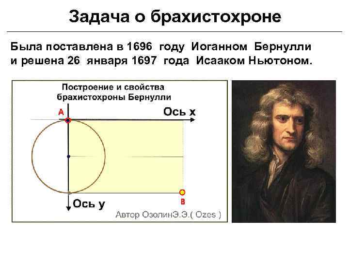 Задача о брахистохроне Была поставлена в 1696 году Иоганном Бернулли и решена 26 января 1697 года Исааком Ньютоном.