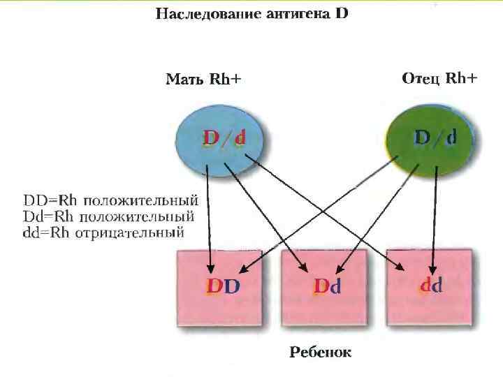 Система Резус • Открытие антигенов: Карл Ландштейнер и ученики (Винер и Левин) в 1940 г. • встречается у 85 % людей белой расы, был назван резусфактором. (Rh+, Rh-). • Полиморфен, известно более 50 его разновидностей. Разновидности резус-фактора: D, С, E, с, е, имеющие наибольшее значение в медицинской практике. Антиген d, антитетичный партнер антигена D, не найден. • Антигены кодируются двумя генами, RND и RHCE, расположенными на коротком плече хромосомы 1, в положении 1 p 36. 11.