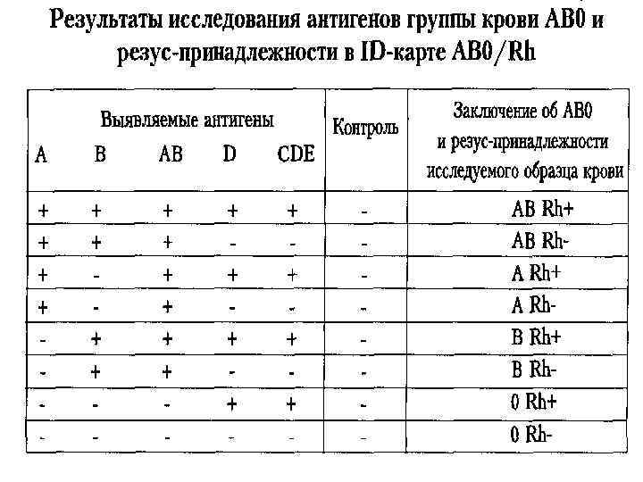Определение группы крови стандартными изогемагглютинирующими сыворотками (прямой метод) Группа крови 0αβ(I) Aβ (II) 0 (I) - - - + А (II) + - + + B (III) + + - + AB (IV) + + + - Bα (III) AB 0 (IV) Знаком (+) обозначено наличие агглютинации, знаком (-) ее отсутствие.