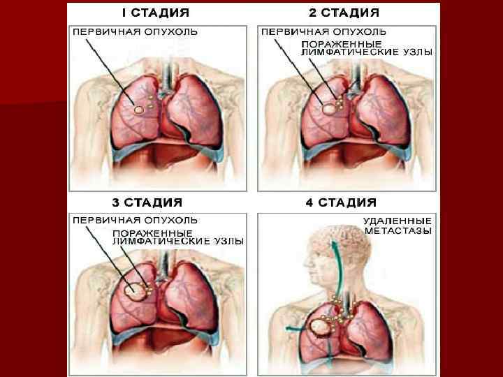 Т 2 – Опухоль более 3 -х см в наибольшем измерении или опухоль любого размера, прорастающая висцеральную плевру, или сопровождающаяся ателектазом, или обструктивной пневмонией, распространяющаяся на корень легкого, но не захватывающей все легкое. По данным бронхоскопии проксимальный край опухоли располагается не менее 2 -х см от карины. Т 3 – Опухоль любого размера, переходящая на: грудную стенку, диафрагму, медиастинальную плевру, перикард, или опухоль, не доходящая до карины менее чем на 2 см, но без вовлечения карины, или опухоль с ателектазом или обструктивной пневмонией всего легкого.