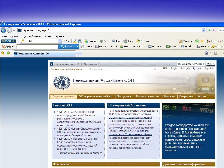 Саммит ООН, посвященный Целям развития тысячелетия 20– 22 сентября 2010 года Саммит ООН по Целям развития тысячелетия завершил свою работу принятием глобального плана действий по достижению к намеченному 2015 году восьми целей по борьбе с нищетой, а также объявлением о новых крупных обязательствах в области улучшения здоровья женщин и детей и других инициатив по борьбе с нищетой, голодом и болезнями.