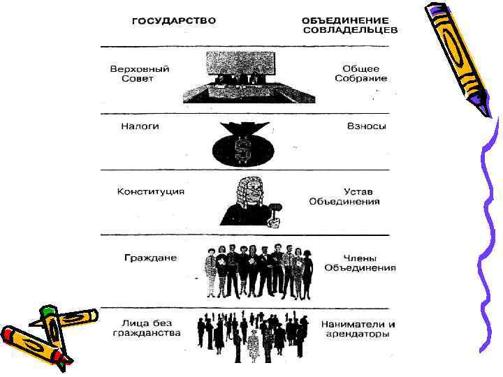 Основные понятия Любая организация (коммуна, громада, орган самоорганизации) предполагает наличие основных факторов: • Собственность, имущество громады – единая неделимая собственность людей, живущих на определенной территории (место удовлетворения коллективных потребностей громады – земля, строения, предприятия, коммуникации и т. д. ); • Финансирование ( содержание собственности, вложение средств в имущество) – налоги, взносы; • Управление собственностью ( орган управления имуществом – совет и дирекцию, комитет).