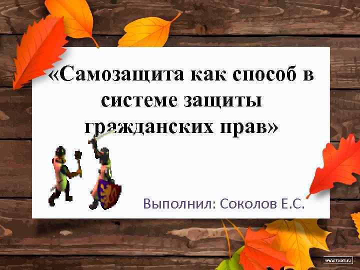 «Самозащита как способ в системе защиты гражданских прав» Выполнил: Соколов Е. С.