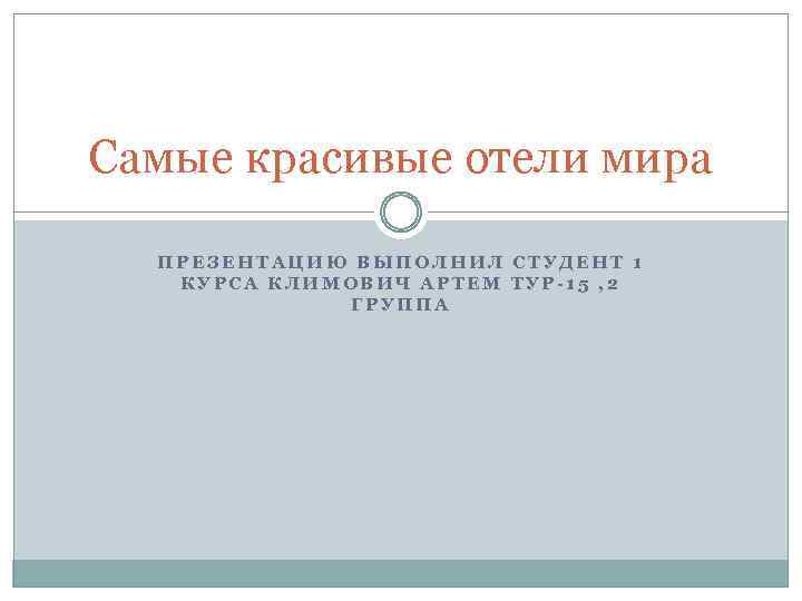 Самые красивые отели мира ПРЕЗЕНТАЦИЮ ВЫПОЛНИЛ СТУДЕНТ 1 КУРСА КЛИМОВИЧ АРТЕМ ТУР-15 , 2 ГРУППА