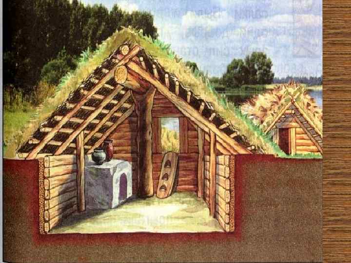 Славяне жили в деревянных избах. Вообще большинство построек были деревянными из-за обилия лесов.