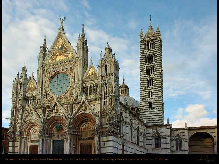 Siena Cathedral. Façade. Giovanni Pisano, italian variant of the French Gothic, 1284 -99.