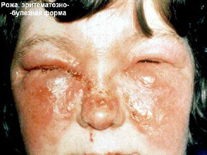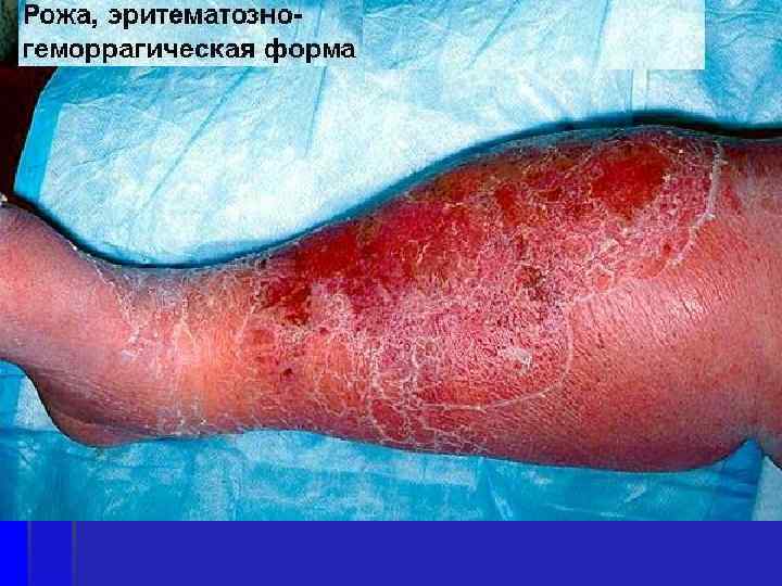 Форма рожи, при которой выявляется гиперемия и отек, называется эритематозной Если на фоне гиперемии появляются пузыри, наполненные серозной жидкостью, то эритематозно- буллезная форма