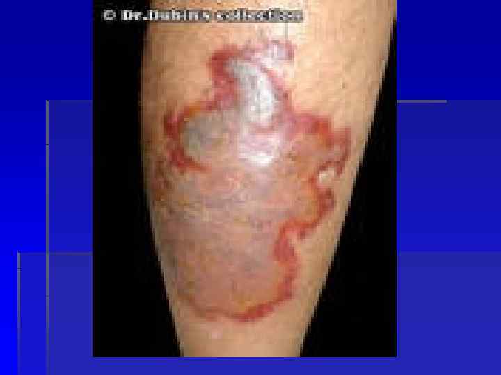 Дифференциальный диагноз Нагноившаяся гематома Тромбофлебит Дерматит, экзема Опоясывающий лишай Узловатая эритема Ожоги, отморожения Флегмона, абсцесс Эризипелоид Сибирская язва