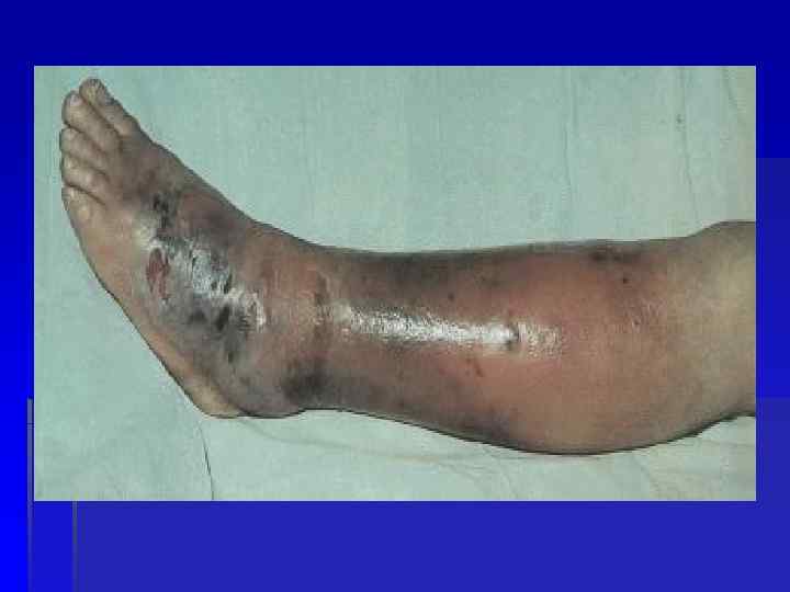 Осложнения Местные: абсцессы, флегмоны, некрозы кожи, флебиты, тромбофлебиты, лимфангиты, периадениты, слоновость Общие: сепсис, ИТШ, острая сердечно-сосудистая недостаточность, тромбэмболия легочной артерии