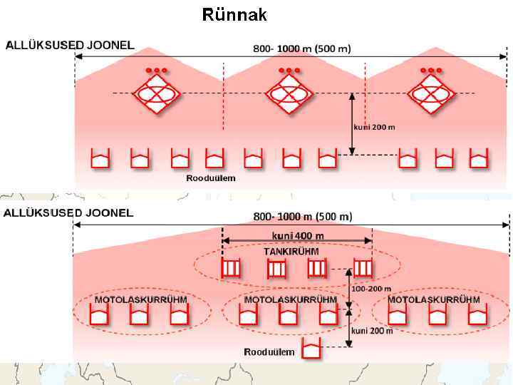 Õhudessant Pataljoni ala 600 x 1000 m Roodu ala 300 x 500 m Kopteridessant Roodu ala (15 helikopterit) 300 x 500 m Rühma ala (5 helikopterit) 50 x 50 m