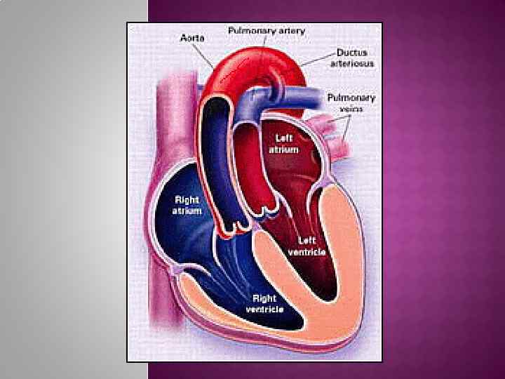 Особенности внутриутробного кровообращения: ОАП, ООО, большая объемная нагрузка приходится на правый желудочек (65 -80% от системного)